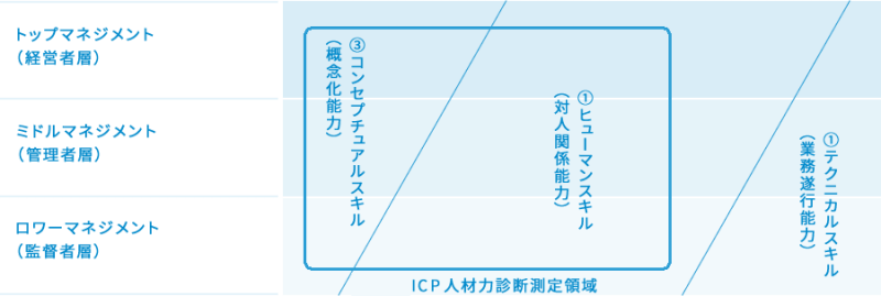 ICP人材力診断は、これからの管理職に必要なビジネスヒューマンスキルとコンセプチュアルスキルを蓄積した社会人データをベースに測定・算出します。